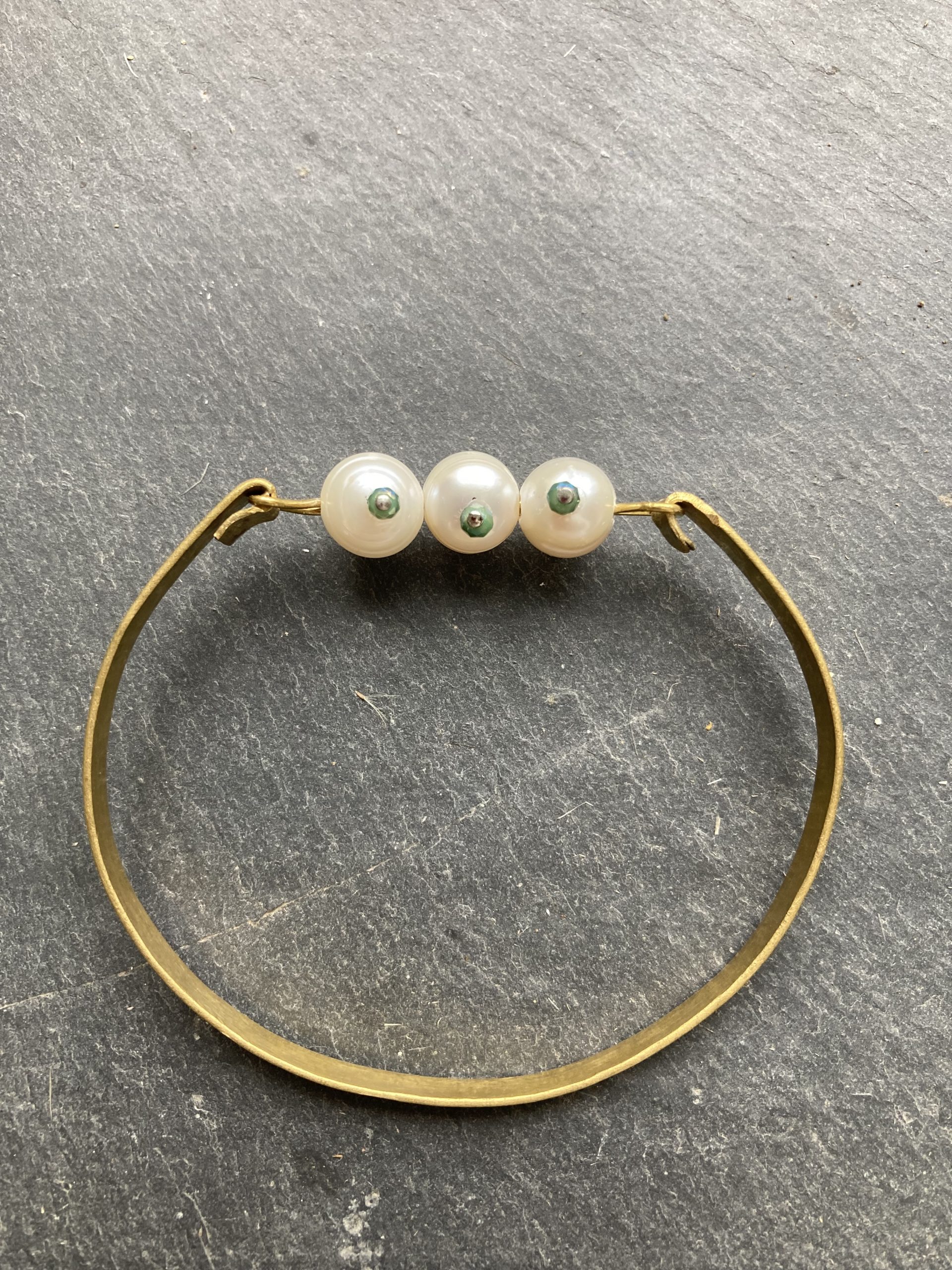 Le fermoir est constitué de 3 perles d’eau douce et de perles de verres vertes.